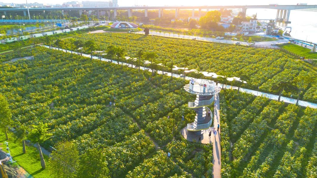 数据显示,近年来,到东涌官坦农业公园游玩的游客与日俱增,最高单日游客超4万人次。“人流量高峰期时,公园旁的集装箱店铺日营业额可达1万元,‘花海经济’旺起来了!”东涌官坦农业公园相关工作人员分享道。